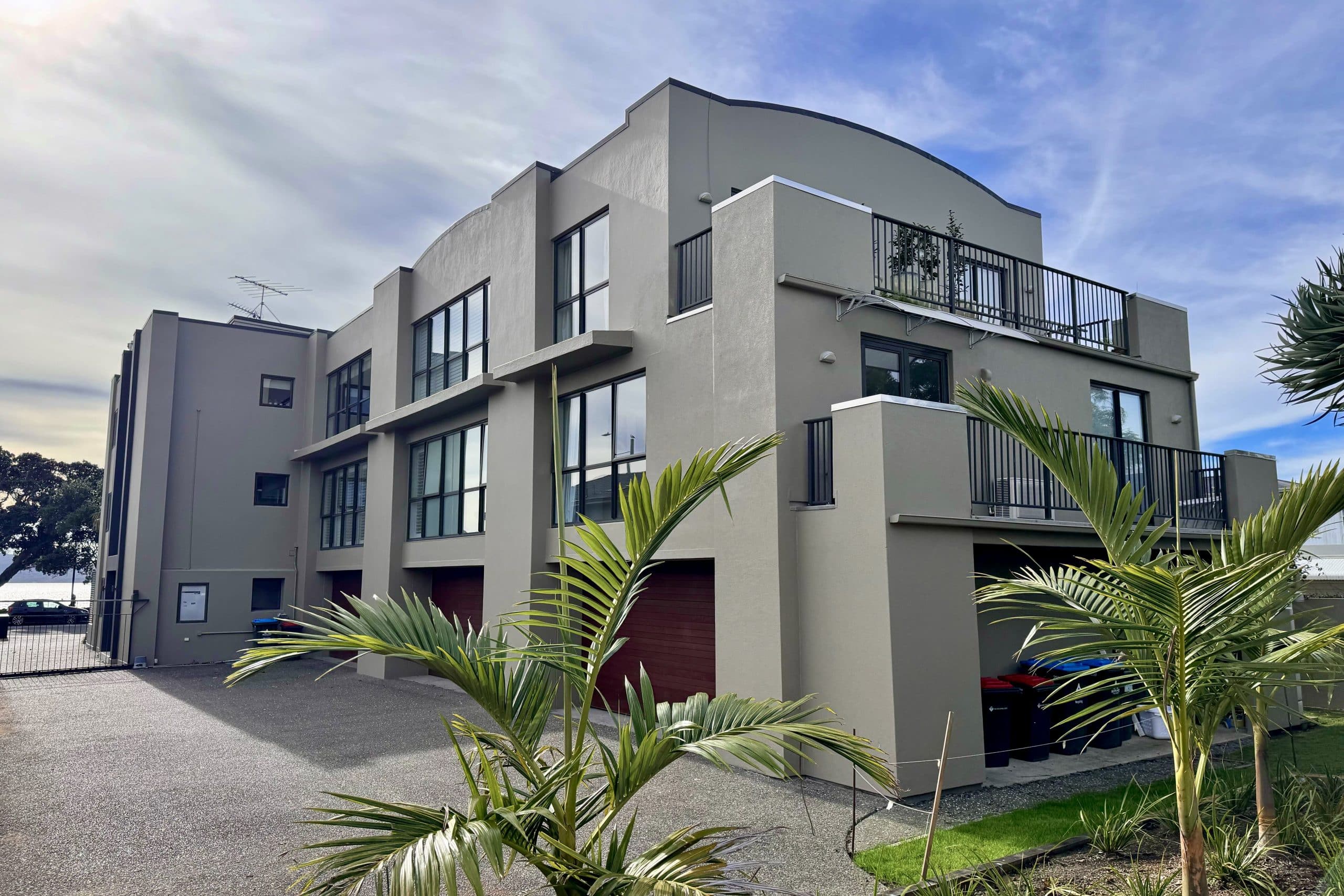Our team of expert Kohimarama house painters recently completed a full exterior repaint of a three-level block of luxury units on Tamaki Drive. After years of exposure to the coastal environment, the plaster surfaces were heavily weathered – the paint was badly faded, and salt deposits had built up, leaving the exterior looking tired and worn.