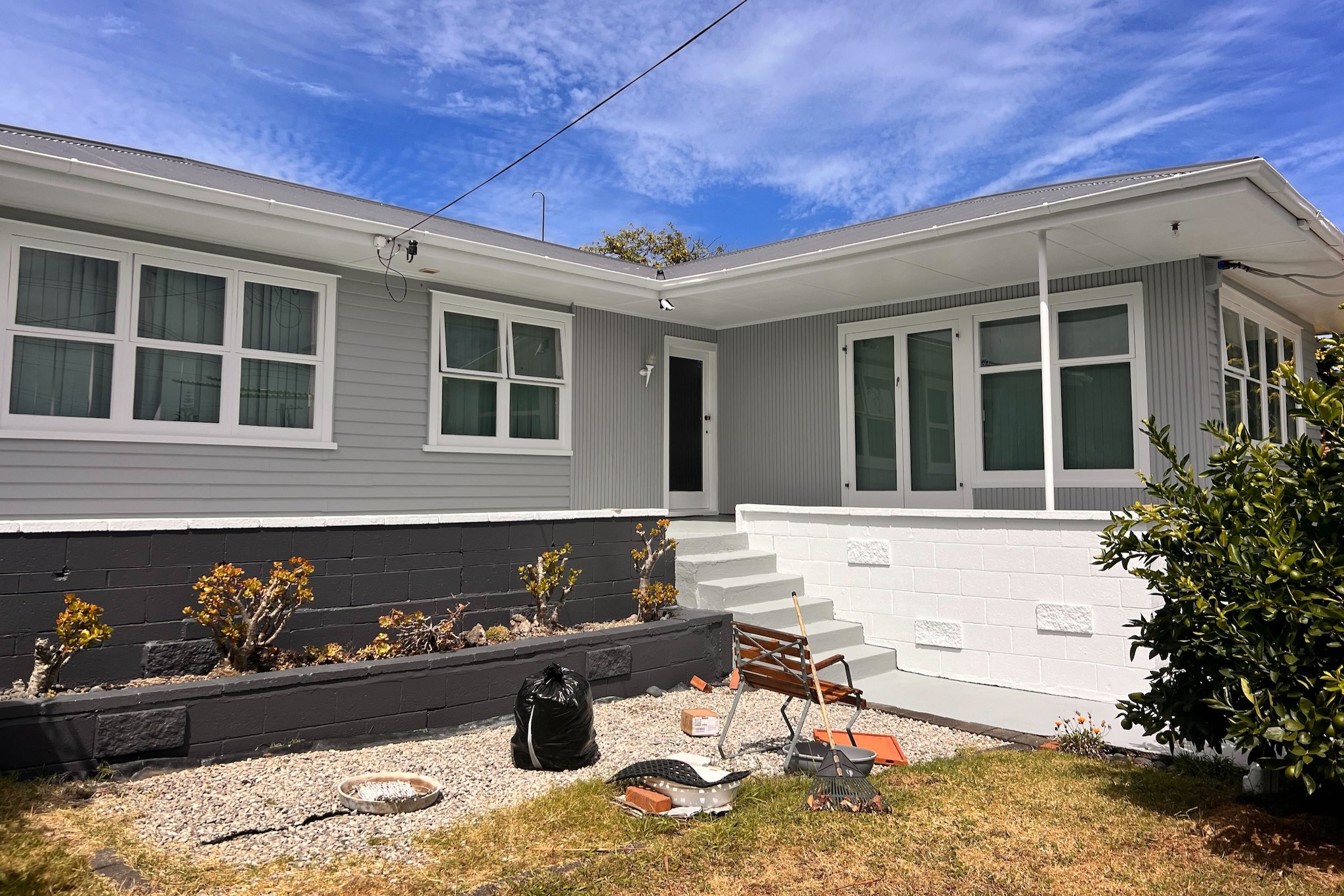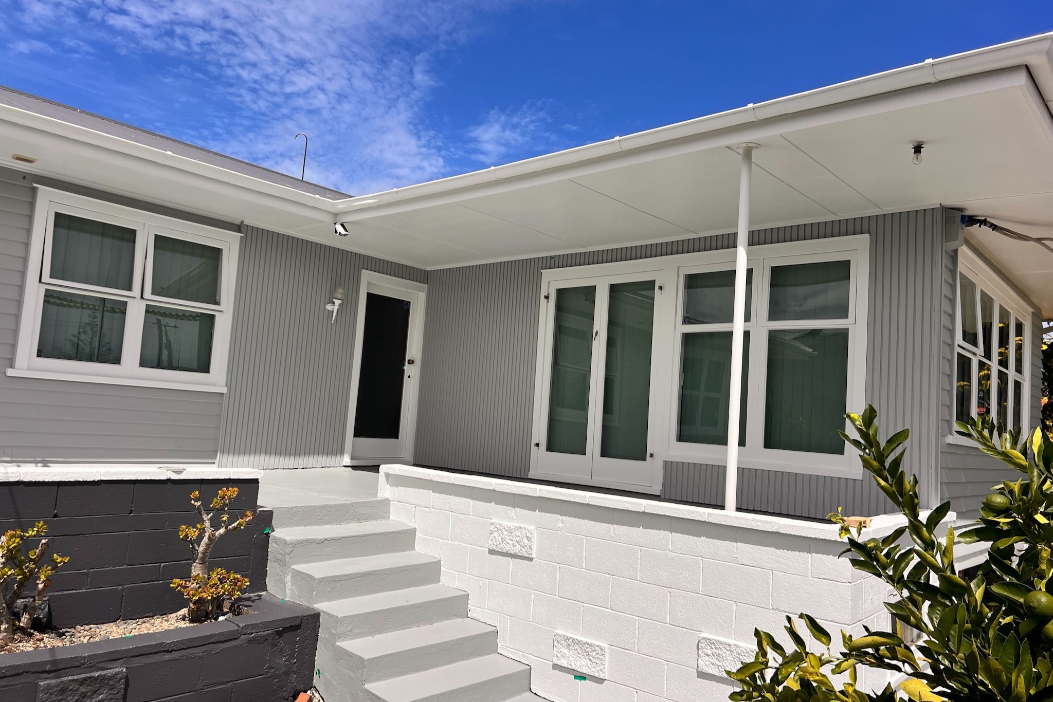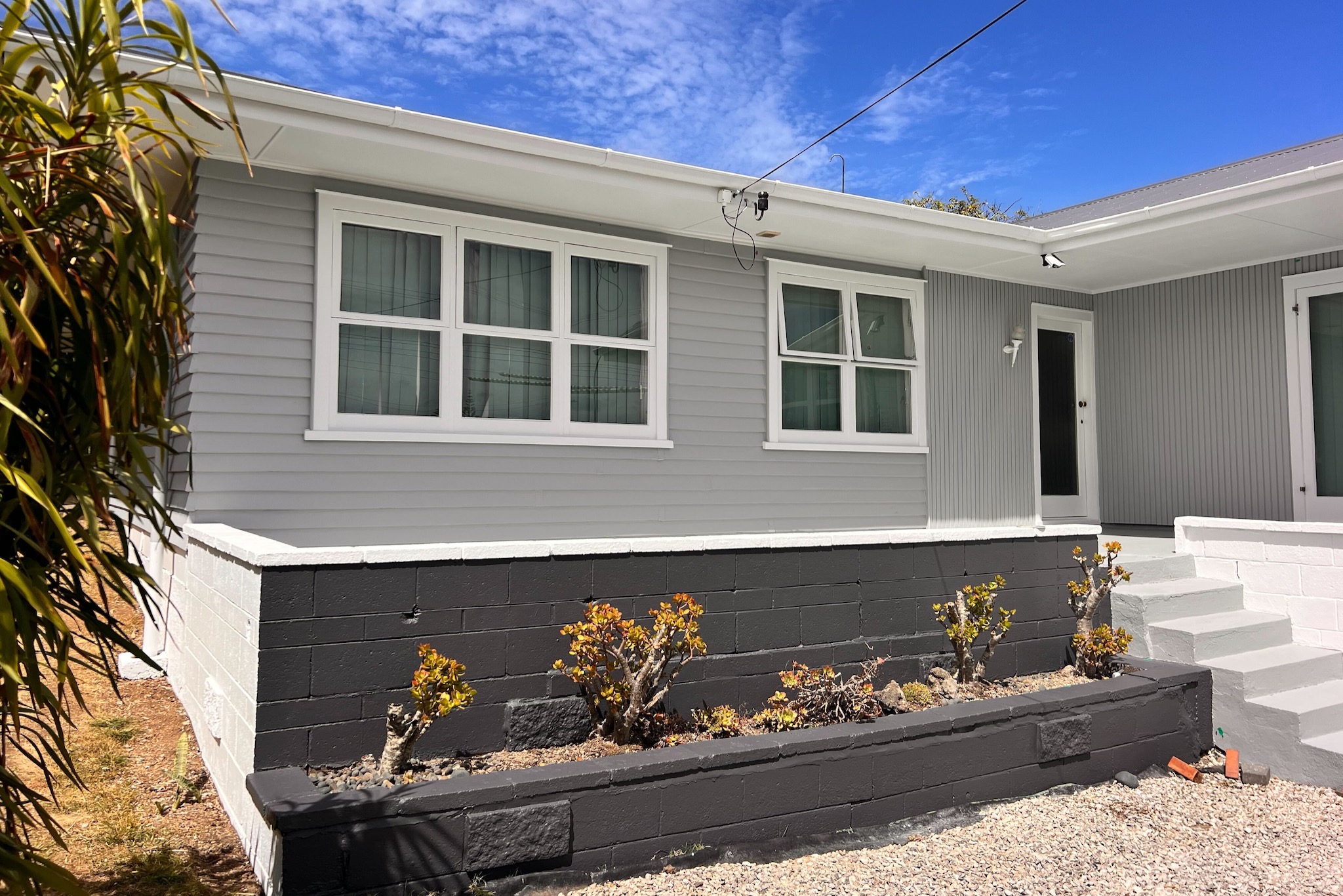 This one had been left for a while. The exterior paint on this Mangere Bridge bungalow was well past due — oxidised across most surfaces, with sections of weatherboard and window joinery where the paint had failed completely and needed to be stripped back rather than painted over. The owners wanted a full reset, new modern colours, and something that would actually last. That’s what we set out to deliver at Auckland City Painters.
