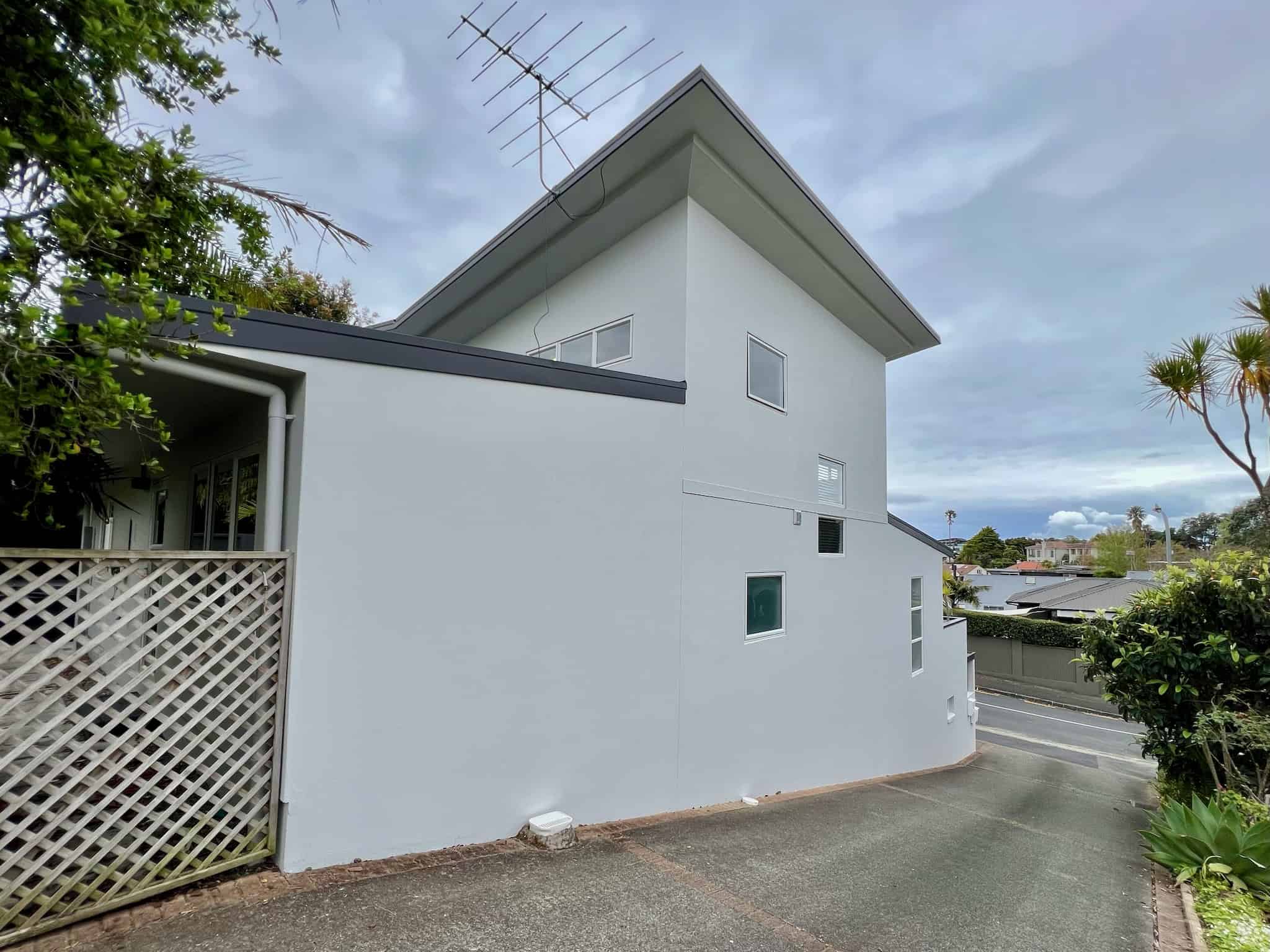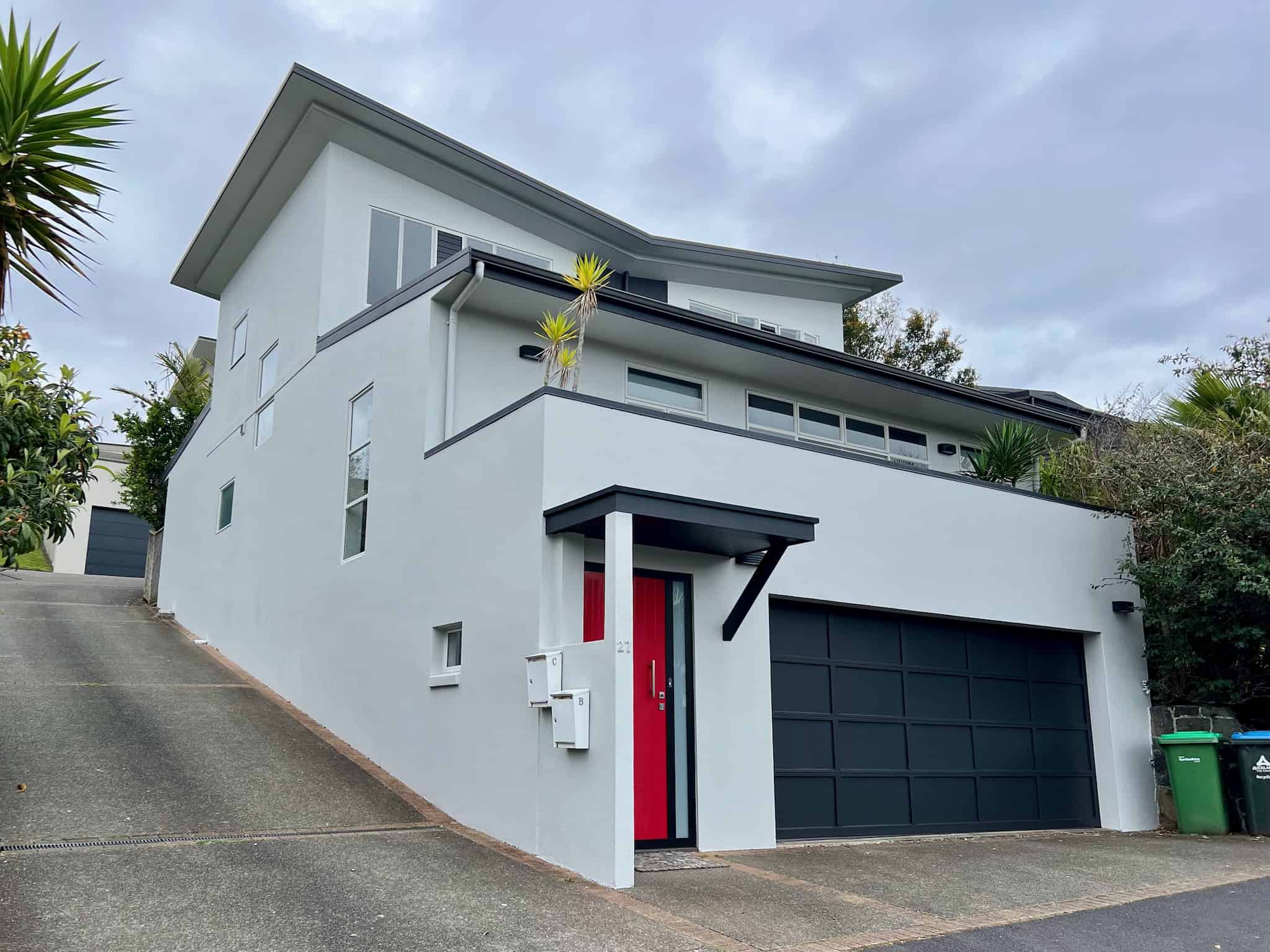 Our team at Auckland City Painters, professional Orakei painters, were asked to complete a full exterior repaint of a modern plastered home, including the roof. The property was in solid condition but the existing beige colour scheme felt dated, and access was made more complex by a shared driveway that needed to remain clear for neighbouring homes throughout the project.