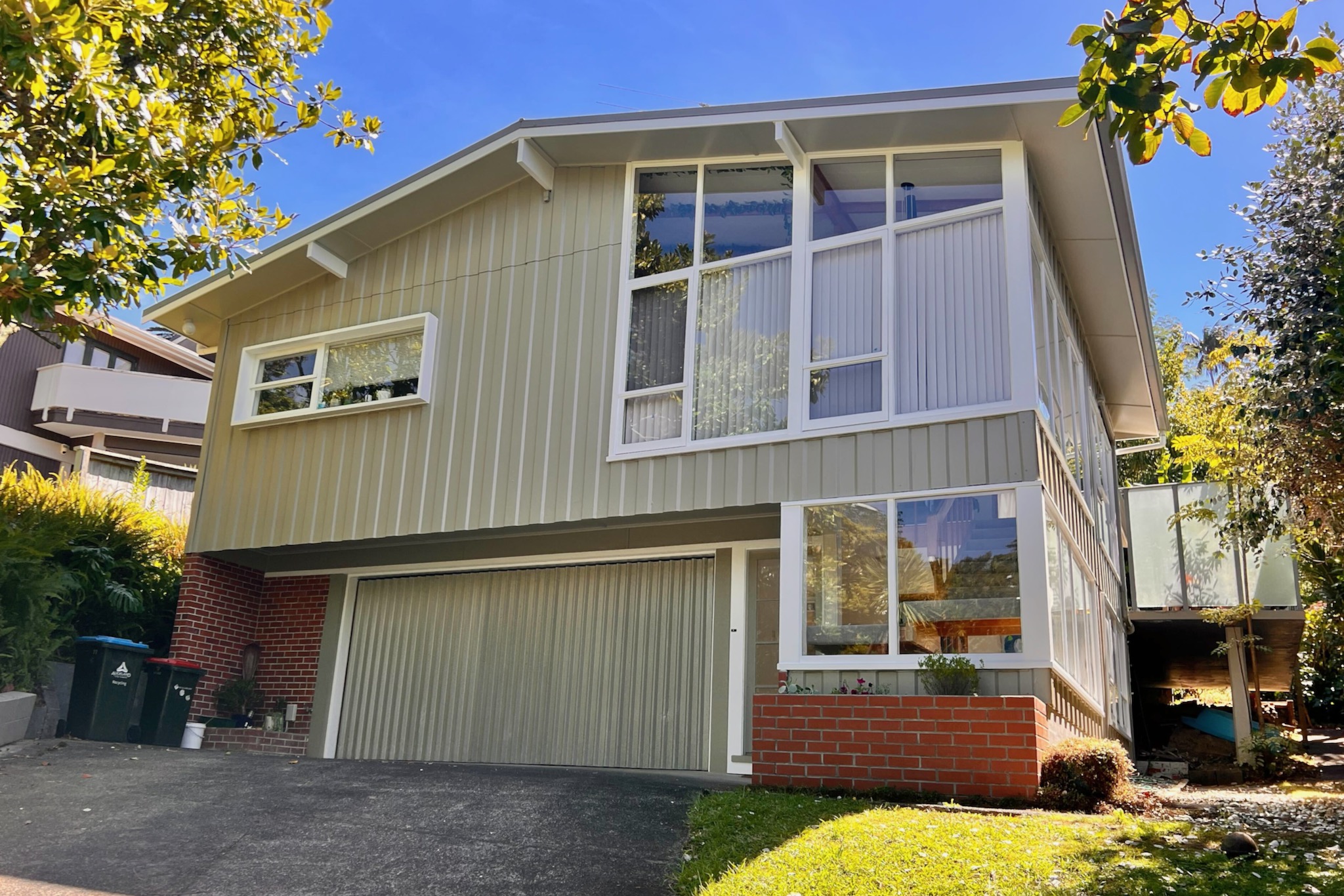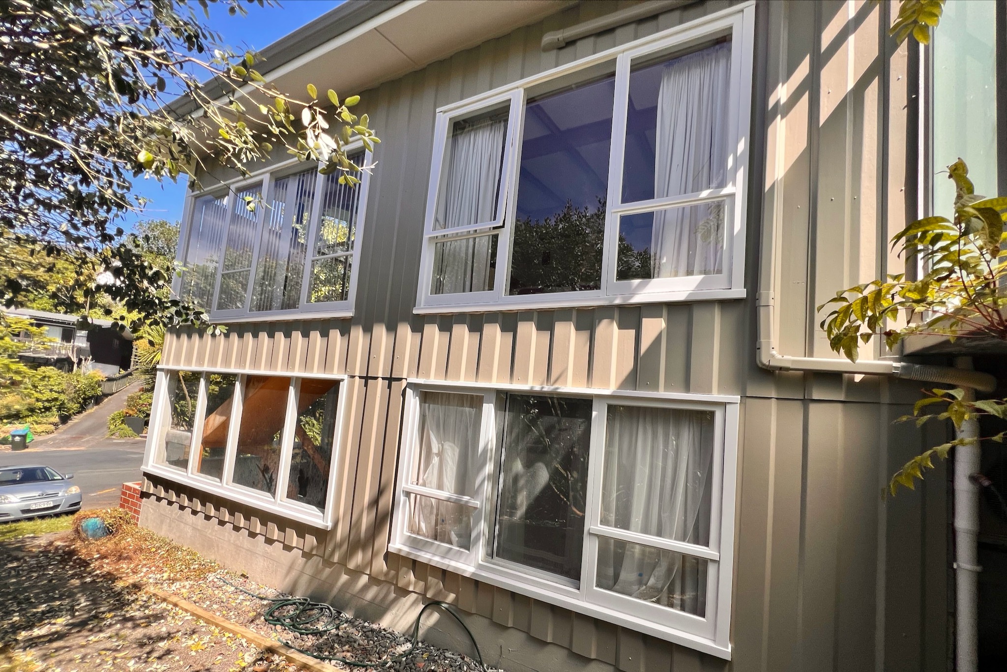 This two-storey 1960s home on Hapua Street in Remuera was well overdue for an exterior repaint. As a rental property, the project required careful planning and coordination with the tenants to ensure the work could be completed with minimal disruption. The cladding had faded over time, the timber windows were heavily weathered, and the iron balustrades had developed rust. As experienced Remuera painters, our team at Auckland City Painters organised the project so the entire exterior could be refreshed safely and efficiently.