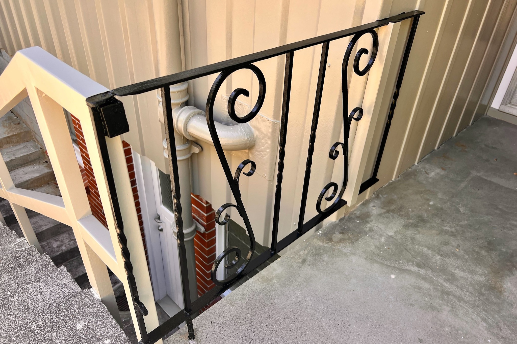 Thoroughly prepared the rusted iron balustrades by removing corrosion and applying rust treatment.